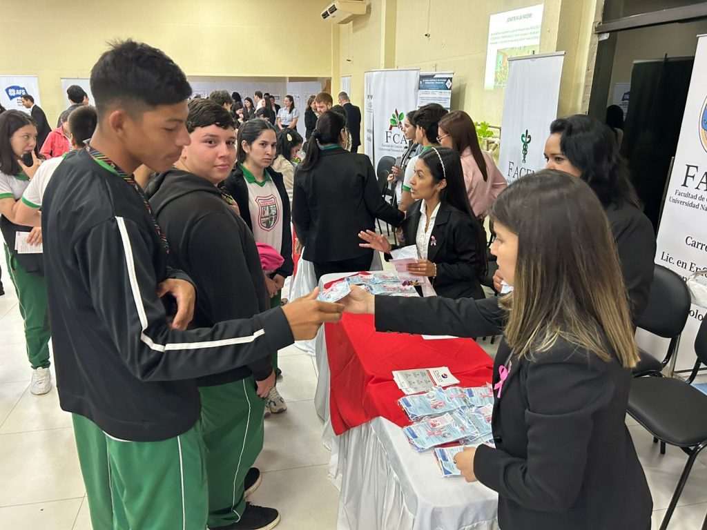 Durante la jornada, las coordinadoras de Extensión e Investigación, junto con los directores de las carreras de Nutrición y de Fisioterapia y Kinesiología, presentaron con entusiasmo las carreras de Enfermería, Nutrición y Fisioterapia y Kinesiología. Se compartieron con los estudiantes de los colegios nacionales de la ciudad de Salto del Guairá valiosas experiencias académicas y una explicación detallada sobre las oportunidades formativas que ofrece la Facultad.