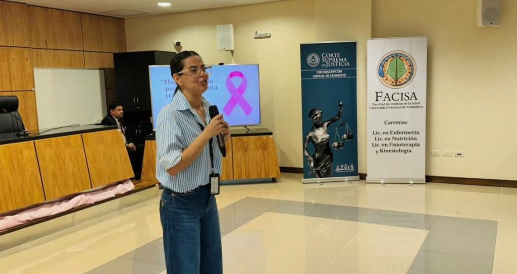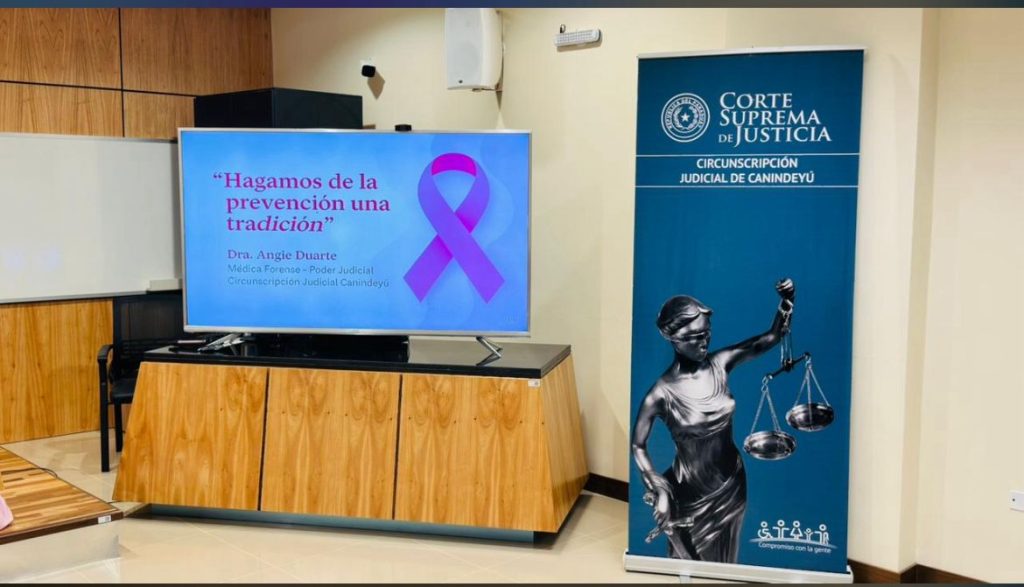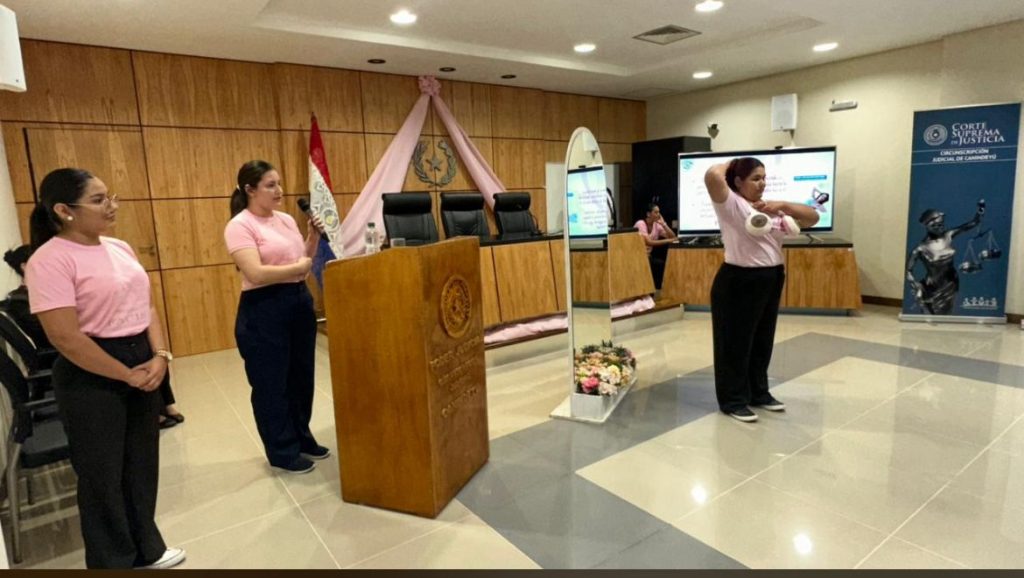 En el marco de la campaña “Usa tus días para vivir” impulsada por la Corte Suprema de Justicia, a través de la Secretaría de Género y la Dirección de Recursos Humanos con adhesión de la XV Circunscripción Judicial, en la fecha como cierre de la campaña se realizó una charla instructiva y de concienciación sobre la importancia de la detección preventiva del cáncer de mamas en la sede del Palacio de Justicia en Saltos del Guairá.