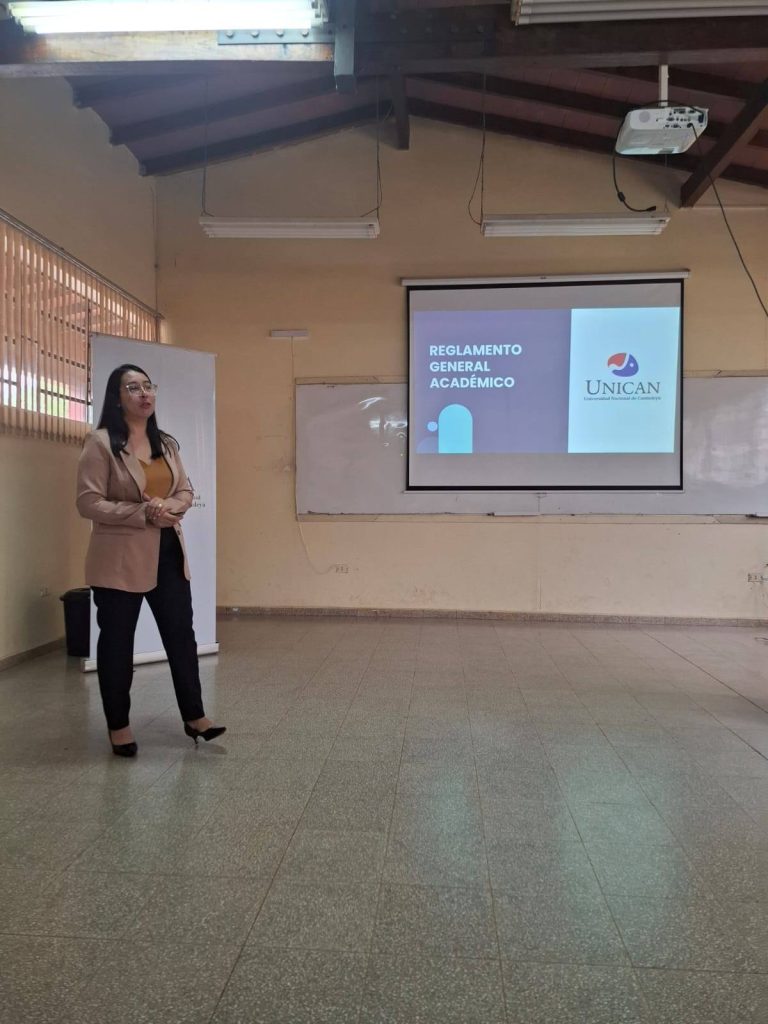 En la fecha 11/03/2026, la Coordinadora de Teoría, Lic. Paola Gavilan Cardozo de la Facultad de Ciencias de la Salud de la Universidad Nacional de Canindeyú (FACISA – UNICAN) realizó la socialización del Reglamento Académico, el Régimen Disciplinario de Docentes y el Reglamento de Aplicación, Mecanismos y Seguimiento de la Evaluación Docente.