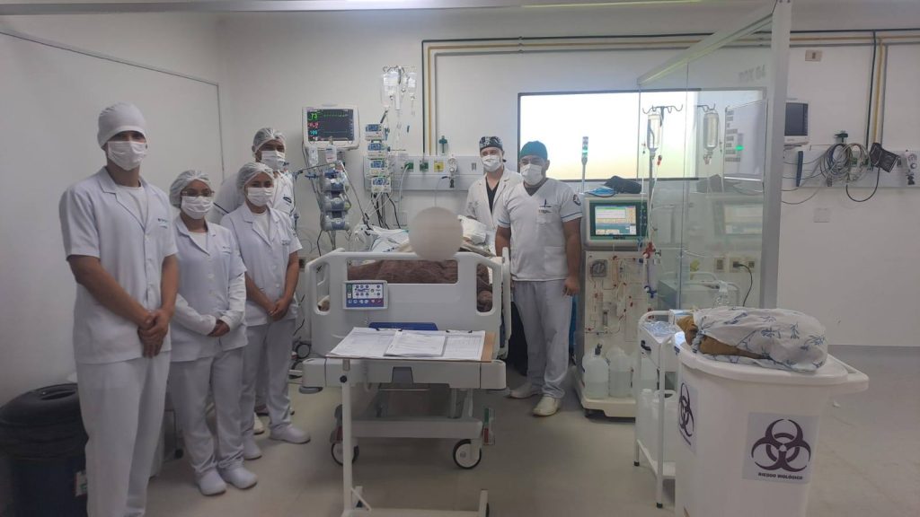 En fecha 19/03/2026, alumnos del cuarto curso de la carrera de Lic. en Enfermería, acompañados por los instructores de prácticas hospitalarias del área de Cuidados Críticos, Lic. Luis Morel, Lic. Adrian Burgos, Lic. Liz Benítez y el Lic. Mauro Ojeda, participaron activamente en la atención del primer paciente sometido a hemodiálisis de rescate en la Unidad de Terapia del Hospital Regional de Saltos del Guairá.